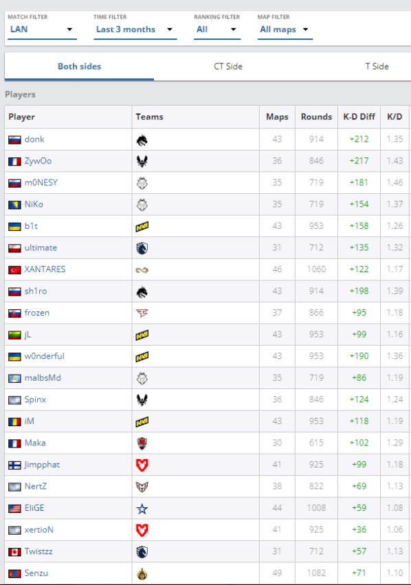 4 игрока NAVI входят в топ лучших игроков за последние 3 месяца по игре на ланах.