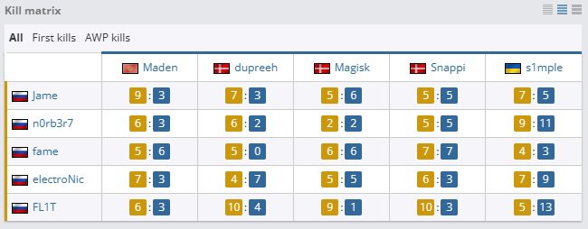 Александр «S1mple» Костылев завершил серию со счетом 41-32. Денис «Electronic» Шарипов сыграл с K/D 29-27.