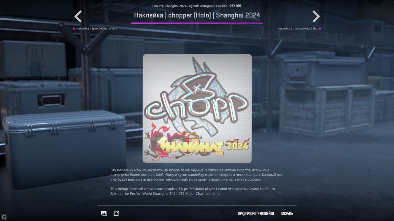 Поэтому, ребят, все уроки по граффити или теггингу (Кибер: один из видов граффити) отменяем, за нас все сделали, выдыхаем. Еще прикольна в командных стикерах эта горящая надпись «Шанхай», тоже понравилась», – высказался Леонид «Chopper» Вишняков.