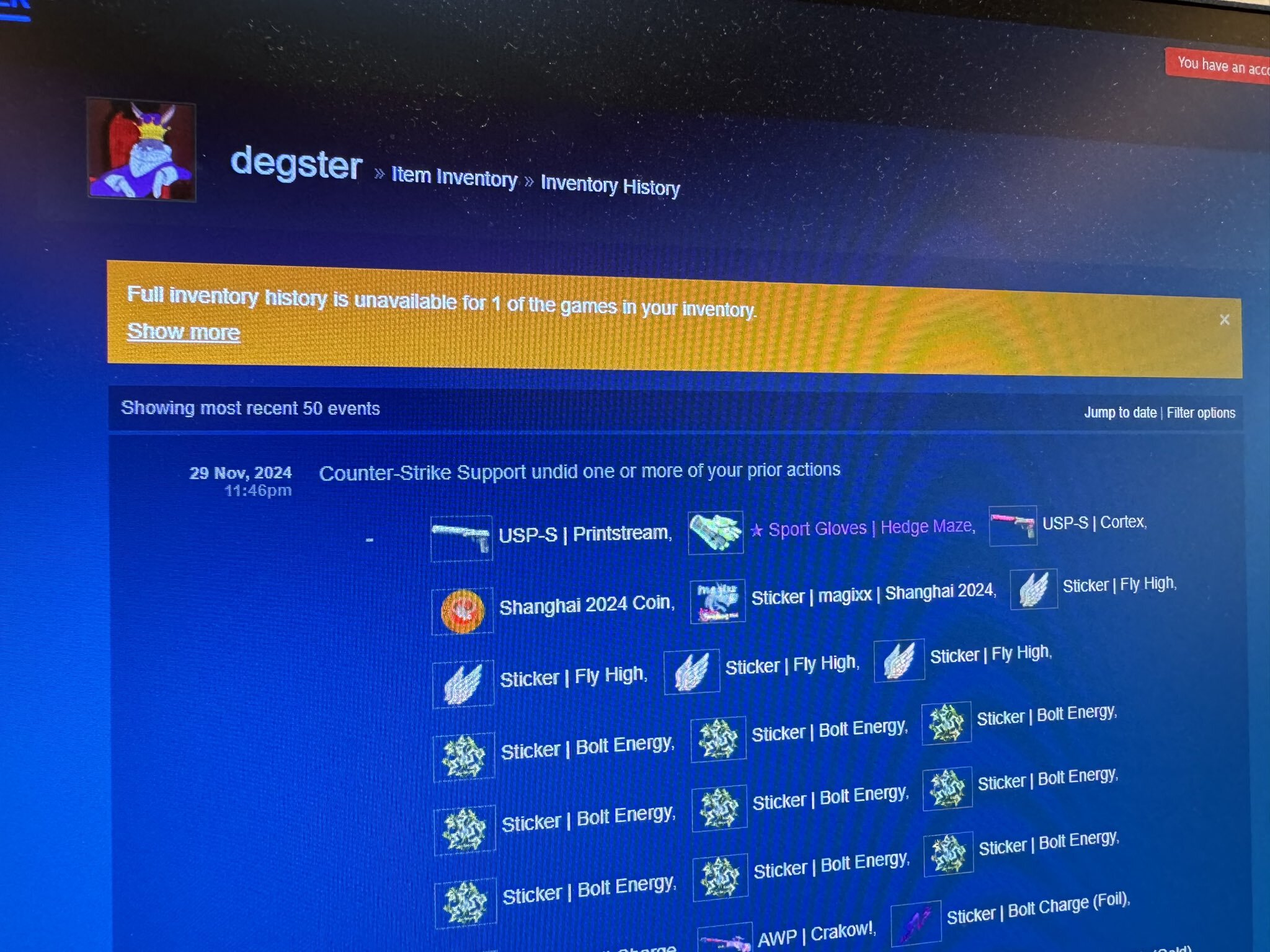 «Только что зашел в практис и вижу это сообщение на своем аккаунте Steam. Плюс я почему-то не вижу свои скины, которые получаю от трейдеров + скины, которые я купил давным-давно. И теперь я не могу использовать свой аккаунт Steam. ПОЖАЛУЙСТА, ИСПРАВЬТЕ ЭТО, Valve» – написал Абдул «Degster» Гасанов.