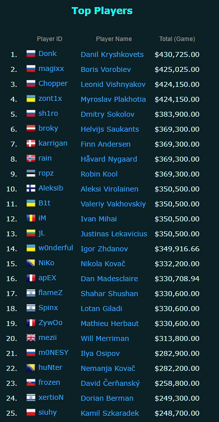 Далее в рейтинге идут игроки Faze без Фрозена, который присоединился к команде в конце 2023-го.