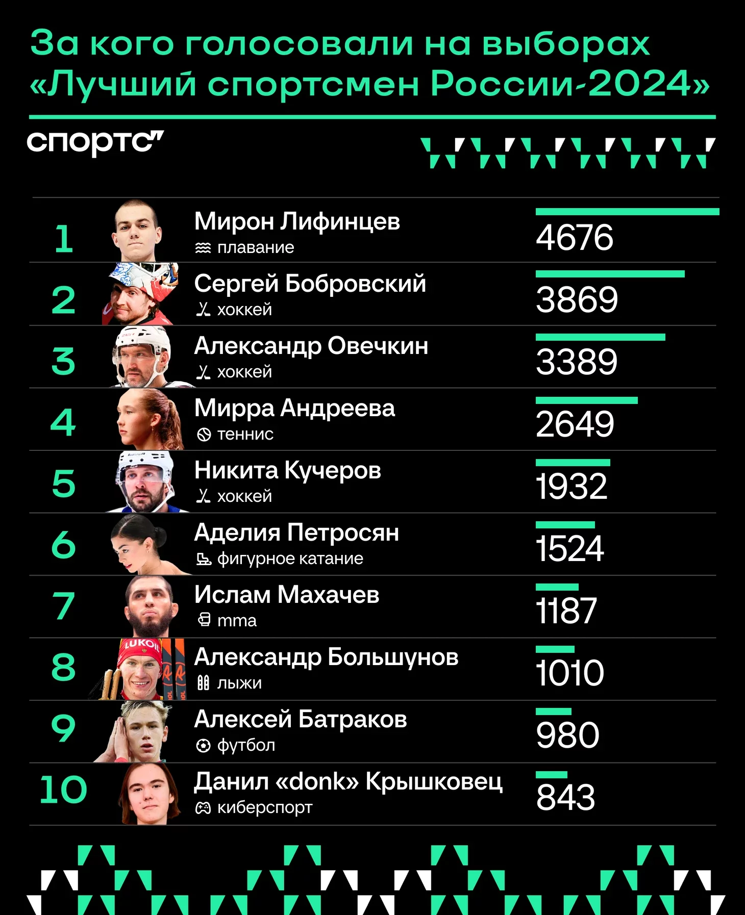 С 19 по 24 декабря на Спортсе’’ проходило голосование «Лучший спортсмен России-2024».
