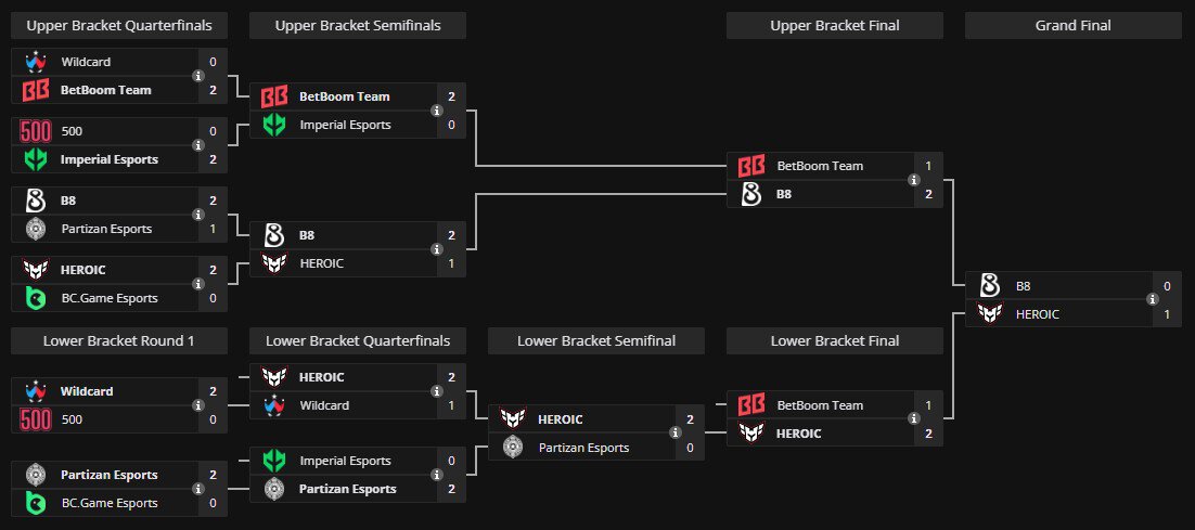 Участники: B8, BetBoom Team, Heroic, BC.Game, Wildcard, Imperial, 500, Partizan.
