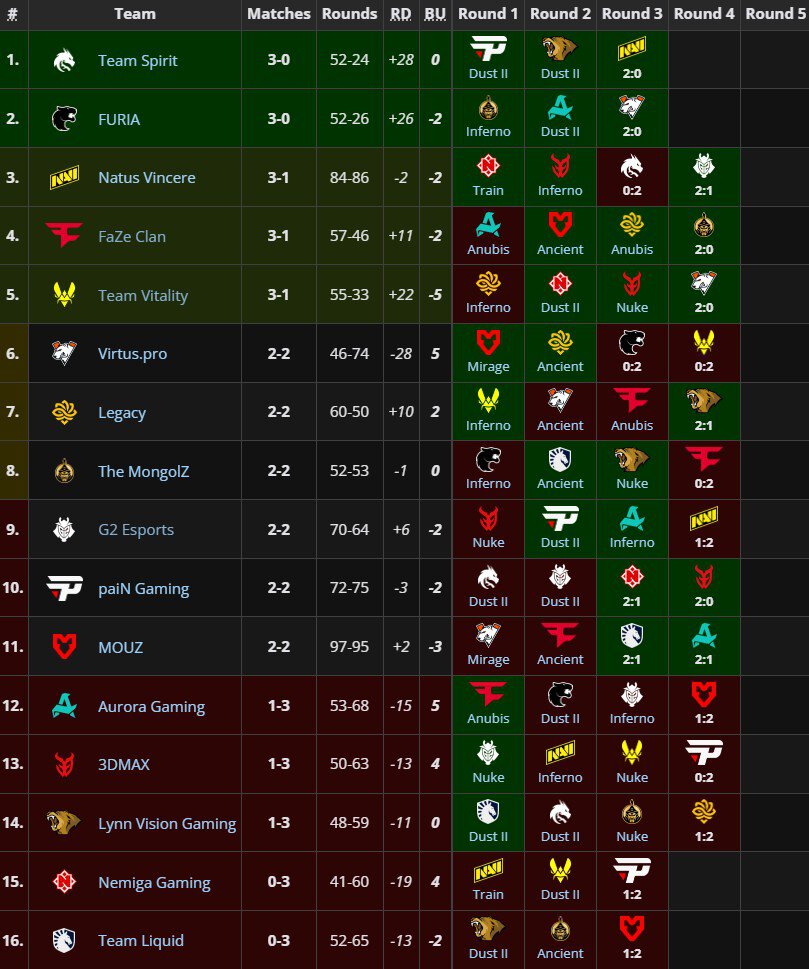 Таблица второй стадии BLAST Austin Major по CS 2.