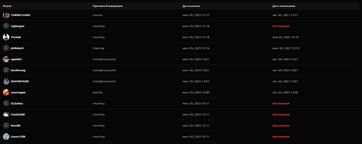 Чаще всего блокировку получали за токсичность в игре.