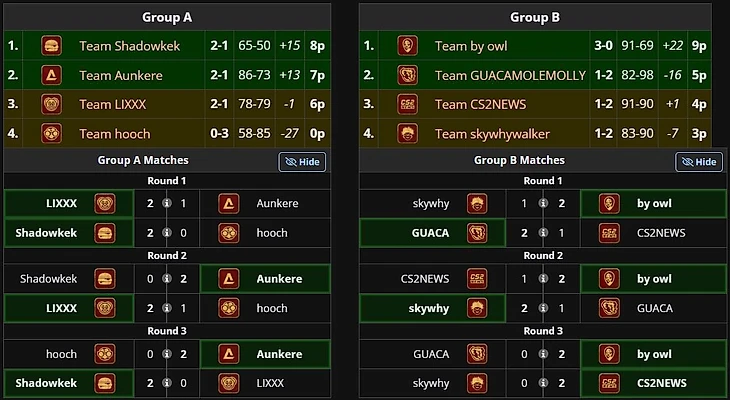Таблица группового этапа турнира BetBoom Streamers Battle 3 по CS 2.