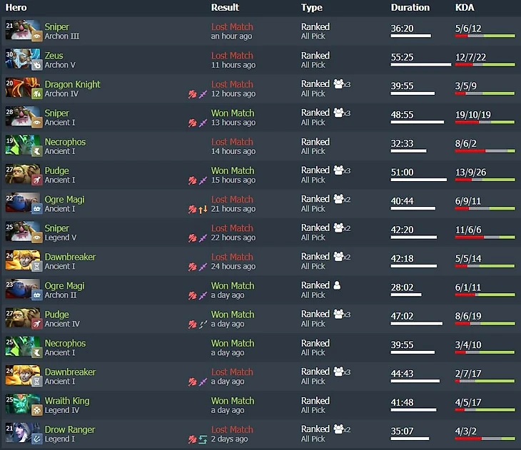 В большинстве матчей S1mple играет на миду. В последней катке украинец пикнул Снайпера, но проиграл с KDA 5-6-12.