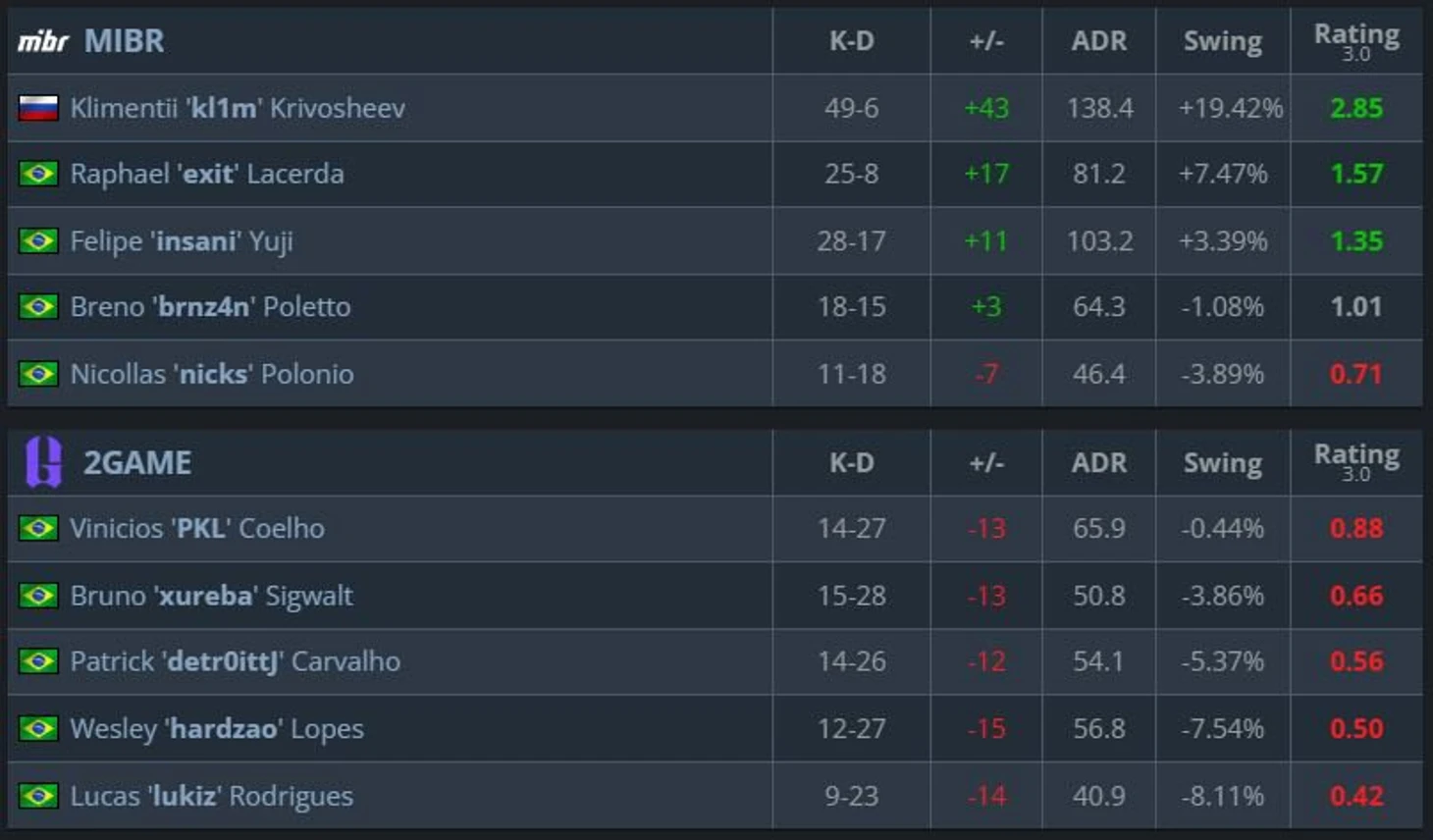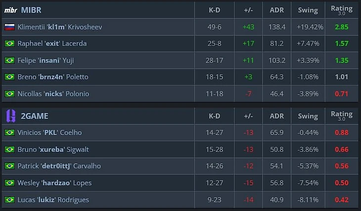 В ночь на 21 сентября MIBR разгромила 2Game в рамках ESL Challenger League 50 South America Cup 2 – 2-0 (Train – 13:1, Nuke – 13:4).