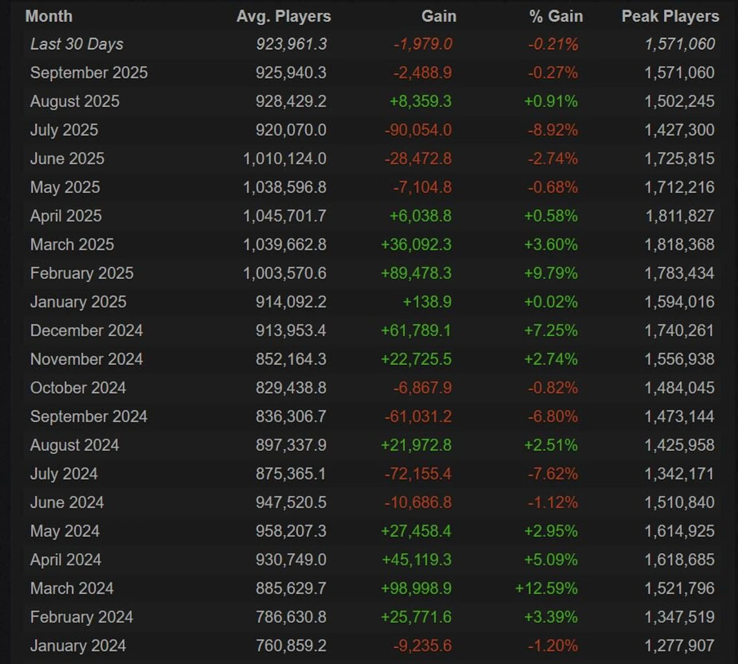 Средний онлайн игры при этом относительно показателя августа упал на 3 тысячи человек – до 925 тысяч.