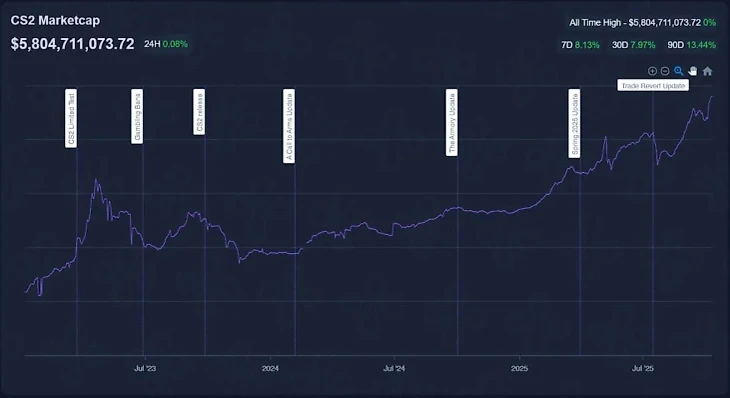 Капитализация рынка скинов в CS 2 достигла 5,8 млрд долларов