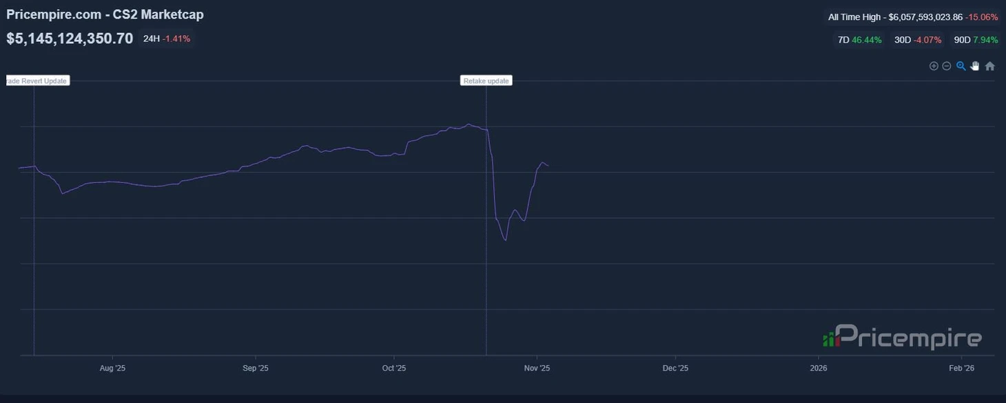 Капитализация рынка скинов в CS 2 достигла 5,1 млрд долларов. До обновления с крафтом ножей было 6 млрд