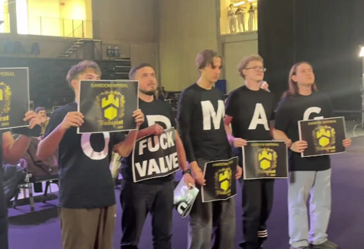 6 человек вышли к сцене StarLadder Budapest Major с плакатом «Fuck Valve». Они потребовали у разработчиков изменить стикер Imperial для мейджора.