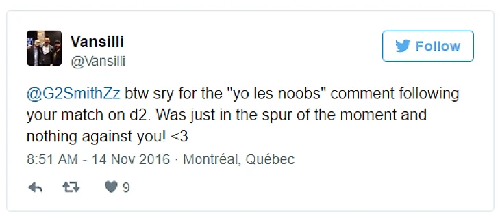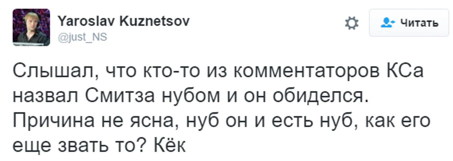 Что произошло?Во время трансляции турнира Northern Arena Montreal комментатор CS:GO Александр «Vansilli» Нгайен назвал игрока команды G2 нубом. Эдуард «SmithZz» Дюбордо мог перевернуть игру, устранив сразу нескольких противников, но промазал 6 раз и погиб, за что и был удостоен такого «звания». Почему «нуб» – это обидно?Слово «нуб» произошло от анлийского «newbie», что в переводе значит «новичок». В игровом сообществе термин носит негативный окрас – нубами называют бесталанных, никчемных игроков. Иногда слово используют в шутливой форме – например, этот термин обыгрывает название команды по Dota 2 «NewBee». Но для киберспортсмена слово «нуб», прозвучавшее в прямом эфире – скорее страшное оскорбление.Все ли так однозначно плохо?С какой стороны посмотреть. Профессиональным игрокам действительно обидно слышать такие вещи. Они отдают себя спорту не ради того, чтобы их оскорбляли перед многотысячной аудиторией. Но, возможно, к таким словам стоит относиться проще, ведь комментаторы и ведущие делают шоу. Резкие высказывания и выходки на грани фола поднимают зрительский интерес. Этот скандал на руку турниру Northern Arena Montreal и игрокам CS:GO. Больше зрителей – больше денег – больше призовых.Как отреагировала общественность?Виновник скандала, Vansilli, поспешил извиниться:«SmithZz, извини, что назвал тебя нубом во время матча на d2. Вылетело случайно, ничего против тебя не имею»Игрока команды SK Gaming Марсело «coldzera» Дэвида возмутила фраза комментатора:«То, что ведущие сказали о SmithZz - просто нелепо. Комментаторы должны развлекать зрителей, а не высмеивать работу игроков»Репортер и инсайдер CS:GO под ником DeKay написал:«Не нравится критика? Играй лучше. Что может быть проще»Ярослав «NS» Кузнецов не увидел в слове «нуб» ничего обидного:Сам SmithZZ поблагодарил людей за поддержку:«Всем спасибо за слова поддержки, они многое значат для меня»