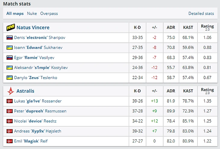 Многие помнят, что s1mple уже был в финале мейджора: на ESL One Cologne 2016 он в составе Team Liquid сразился с SK Gaming. На этом турнире Саша, так же как и в Лондоне, показал невероятную игру в четвертьфинале и полуфинале, но полностью выключился на самом главном матче чемпионата. Матч с SK он закончил с рейтингом 0.63 – нонсенс для такого игрока. Во вчерашнем поединке с Astralis произошло нечто похожее: Симпл закончил игру с самым низким ADR (средним количеством урона за раунд). Все бы ничего, но именно это в итоге и сыграло значительную роль в конечном результате Na`Vi.