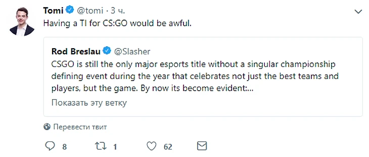 Также lurppis считает, что для проведения турнира наподобие TI или Worlds из League of Legends игрокам в CS:GO будет необходимо урезать зарплаты как минимум в половину. «При создании такого масштабного турнира как TI, интерес зрителей к остальным чемпионатам будет значительно ниже. Дисциплине нужны турниры и в остальные 11 месяцев, чтобы платить игрокам зарплату», – заявляет lurppis.