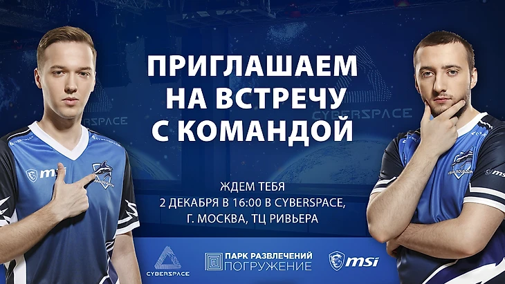 Состав Vega Squadron по CS:GO проведет встречу с болельщиками 2 декабря, в 16:00 в киберспортивной арене Cyberspace (Москва, Автозаводская улица, 18).