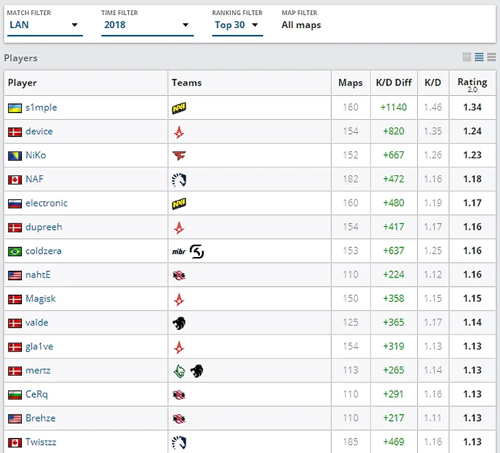 Да, s1mple в этом году был 6 раз признан самым ценным игроком на турнирах, однако порой это были совсем не крупные ивенты. Вряд ли Саша особо гордится своими медалями MVP за CS:GO Asia Championships или пятый сезон StarSeries i-League. Device же в уходящем году стал лучшим игроком на многих престижных турнирах: ECS, ELEAGUE Premier 2018, BLAST Pro Series Istanbul, IEM Chicago, ESL Pro League Season 8 и, конечно же, на лондонском мейджоре.
