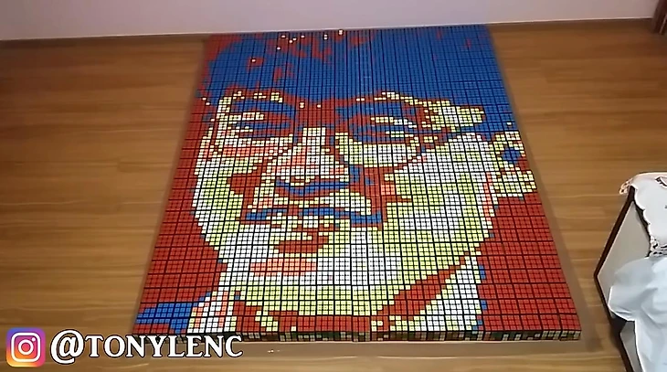 Парень собрал портрет Паши Бицепса из кубиков Рубика