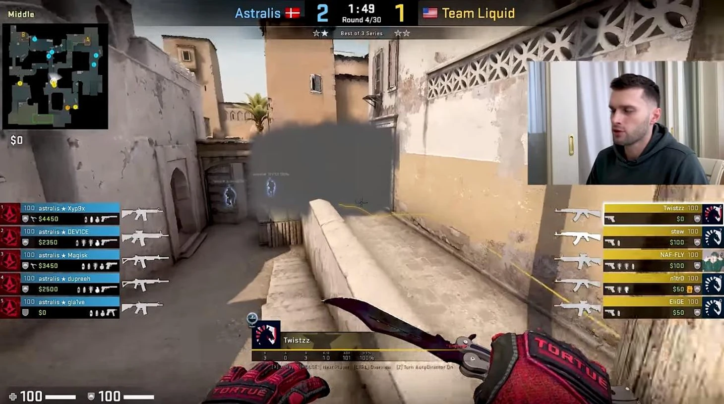 Также XAOC указал на несколько ошибок Astralis, которые и стоили команде игры. Датчане делали не самые удачные быстрые раунды, а Team Liquid сразу же наказывала их за это. Так, в этом случае игроки Astralis решили быстро выйти на длину, однако их остановил коктейль молотова от Твистза, который позже был потушен дымовой гранатой. Несмотря на это, игроки атаки решили выйти через дым, но Twistzz легко принял их с ямы.