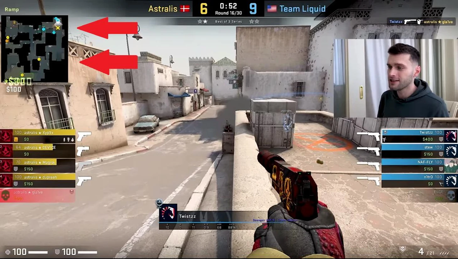 XAOC не отрицает, что некоторые раунды достались Team Liquid почти даром. Так можно сказать о второй пистолетке, когда Astralis подчистую переиграла американцев, сделав отличный фейк на точке А после первого фрага. Обратите внимание на мини-карту: Team Liquid настолько была уверена в атаке датчан на эту точку, что перетянула сюда всех четверых игроков. В это же время Astralis спокойно зашла на точку В и поставила там бомбу.