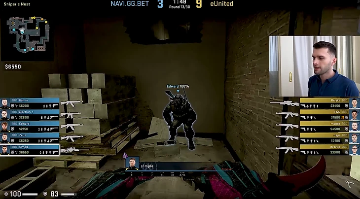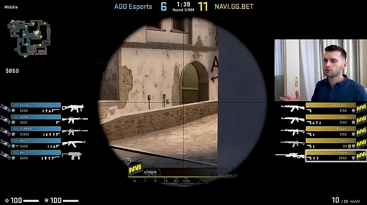 XAOC также понял, что Симпл может агрессивно сыграть в коннекторе, однако он делает это только на эко-раундах соперника. В этом случае ему не приходится переживать по поводу наличия AWP у врагов. В крайнем случае ему всегда может помочь союзник с винтовкой.