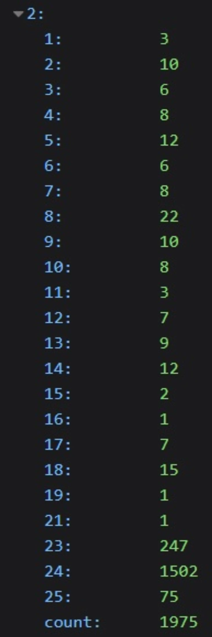 Ниже скриншот, на котором показано часть данных. В данном случае они означают нанесенный урон по груди. Ключи (числа левее от двоеточия) означают урон в хелспоинтах. Значения(числа правее от двоеточия) означают количество пуль которые попали в район груди, и нанесли то количество урона, которому соответствует ключ. Я решил записать в таблицу вероятный и маловероятный урон, чтобы посмотреть, какой выстрел может быть “холостым”.