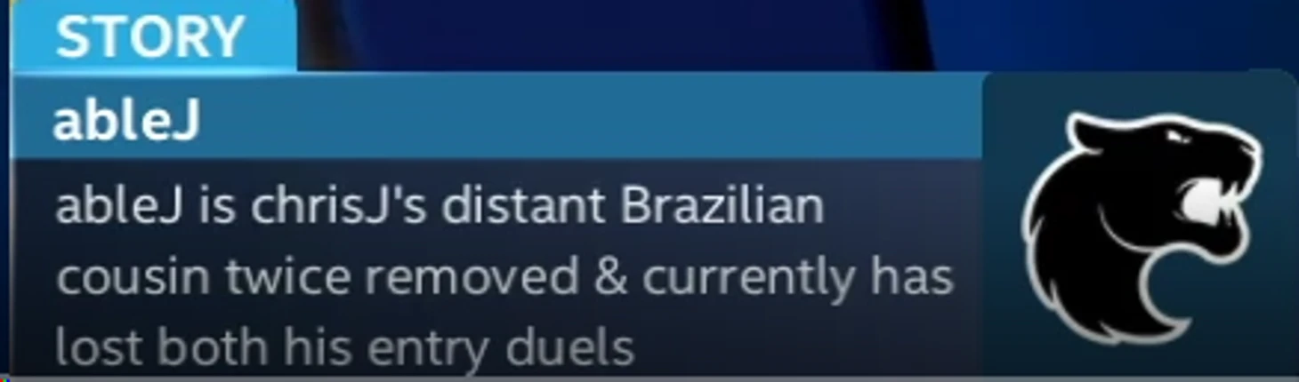 «AbleJ – дальний бразильский кузен chrisJ. Его дважды убили, ему не удалось выиграть ни одной из своих дуэлей».