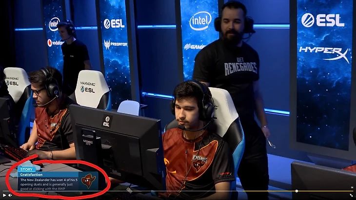 Например, всплывающие окна с интересными фактами про игроков или команды. За них ответственен австралиец Дэвид «dehkS» Пауэлл, работающий в ESL. Именно он делает трансляцию в сотни раз веселее.