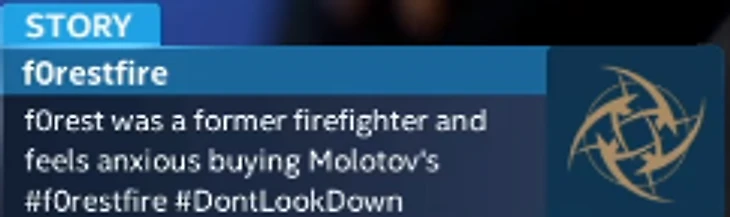 «F0rest ранее был пожарным, поэтому теперь он всегда беспокоится, когда покупает Коктейли Молотова».