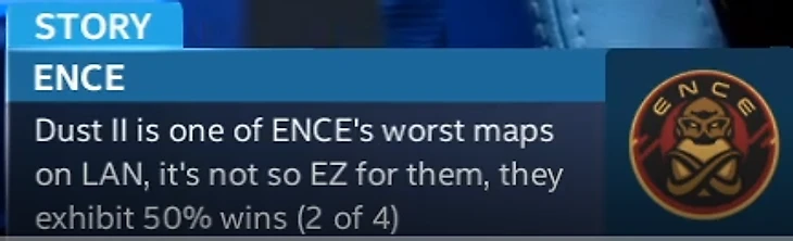 «Dust2 – одна из худших карт Ence на LAN, так что это совсем не EZ4ENCE. Они выиграли лишь 50 процентов матчей на этой карте (2 из 4)».