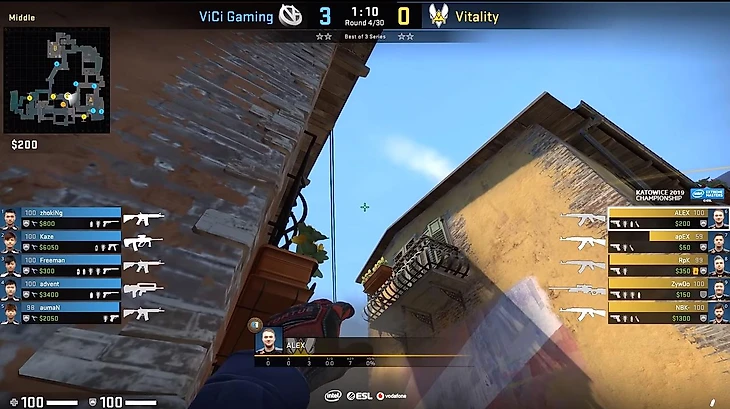 Еще одну интересную стратегию показали французы из Team Vitality. Они сделали эффективный фейк на Inferno, который запутал четверых игроков Vici Gaming. Vitality проиграла этот раунд, но только из-за героических усилий kaze. Сам же фейк получился прекрасным. Начинается он с раскидки смоков, один из которых бросает ALEX.