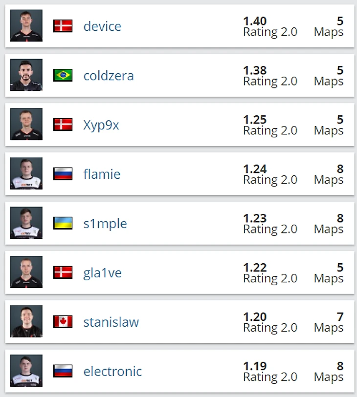 И он вернулся! Уже на турнире в Лиссабоне он показал достойный результат, а на IEM Katowice Major набрал какую-то невероятную форму. Сейчас Флейми – четвертый игрок мейджора по среднему рейтингу, он обходит даже Симпла. Впереди Флейми – device, coldzera и Xyp9x, но они еще не сыграли в четвертьфинале.