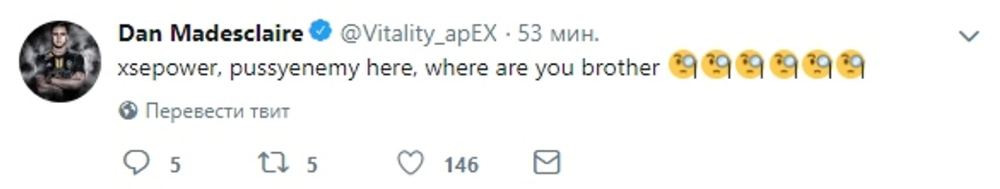 «Xsepower, твой соперник-pussy тут. Где же ты, брат?».