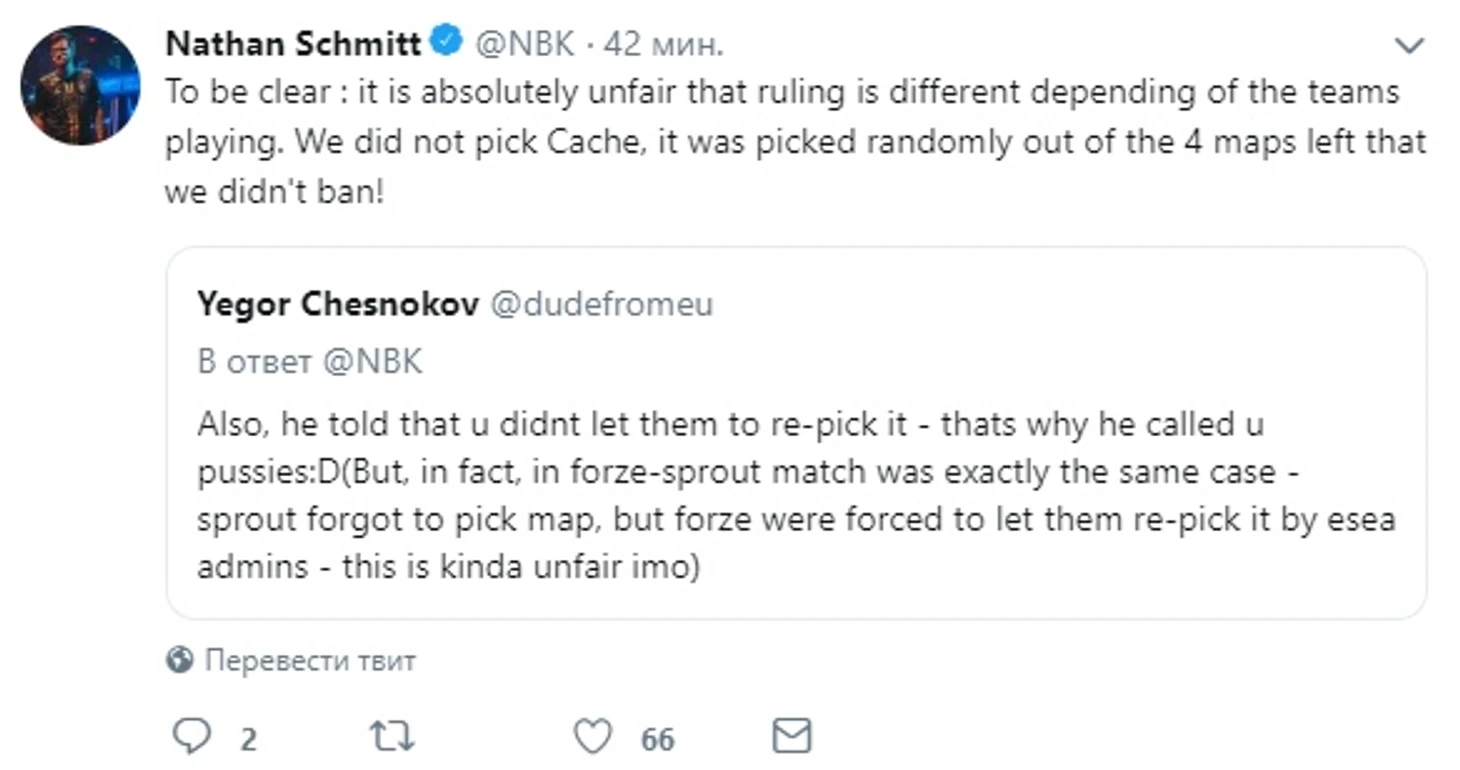 В целом, ситуация вышла очень странная, поскольку ни одну из команд виновной назвать нельзя. Здесь скорее стоит предъявить претензии администраторам ESEA, которые выставляют разные правила для разных команд.