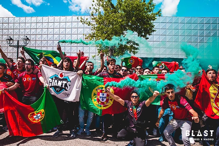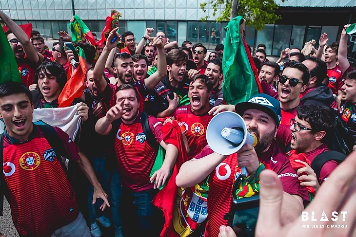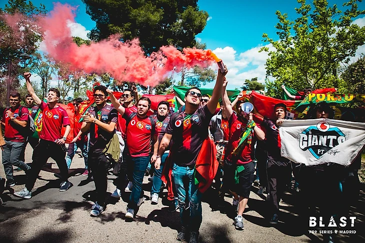 Теперь CS набирает популярность на Пиренейском полуострове, где живут самые горячие в Европе болельщики. Вчера в стыковых матчах BLAST Pro Series в Мадриде португальцы из Giants Gaming играли против Movistar Riders. Поддержать любимую команду на турнире приехали десятки фанатов: