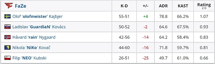 Ругать Neo сейчас будет очень легко, но для начала нужно понять – а действительно ли он был главной причиной поражения Faze? В матче с VP – точно нет. Предъявлять претензии можно почти ко всем: rain провалил Nuke, NiKo с Олофом могли сыграть гораздо лучше на Mirage, а Guardian часто промахивался на Overpass.