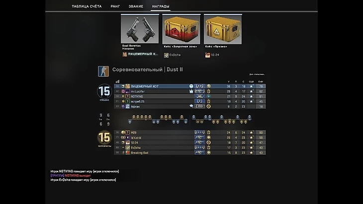 А вот получать дроп скинов и граффити можно получать только после матчей на официальных серверах Valve: матчмейкинг, напарники, бой насмерть, перелетные снайперы, гонка вооружений, обычный. Шанс получить дорогие скины крайне мал, но не равен нулю – раньше после матчей игрокам падали даже драгон лоры. Также учитывайте, что из одного матча может выпасть только 1 предмет – либо скин, либо кейс, либо граффити.