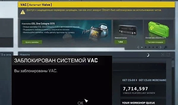 Позже этот бан изменится на ВАК. Он так же является бессрочным. В профиле отображается как VAC.