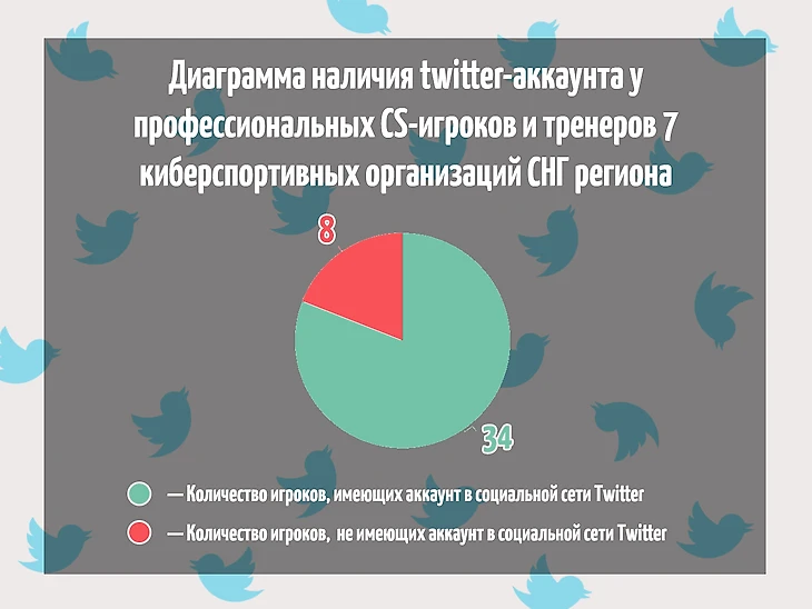 Диаграмма наличия twitter-аккаунта у профессиональных CS-игроков и тренеров семи киберспортивных организаций из СНГ