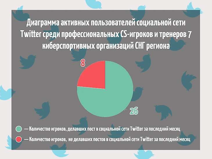 Диаграмма активных пользователей социальной сети Twitter среди профессиональных CS-игроков и тренеров семи киберспортивных организаций СНГ региона
