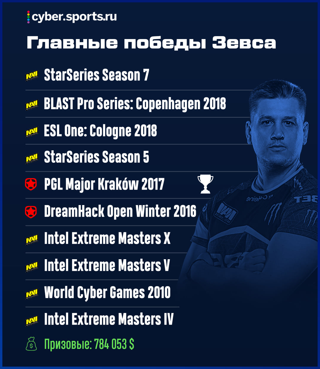 За украинскую организацию Зевс выступал 10 лет. С ней он выиграл множество турниров, но свой главный титул, чемпиона мейджора, Данил взял в составе Gambit.