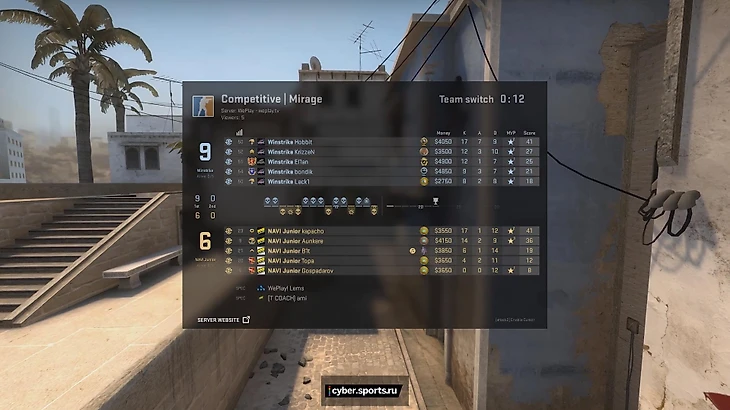 Особенно потной была вторая карта – Mirage. Половина закончилась со счетом 9-6 в пользу защиты (Winstrike), и это классический результат для этой карты. Удивляло другое – за эти 15 раундов Gospadarov (снайпер NaVi и, по мнению многих, главная ее звезда) не сделал ни одного фрага.
