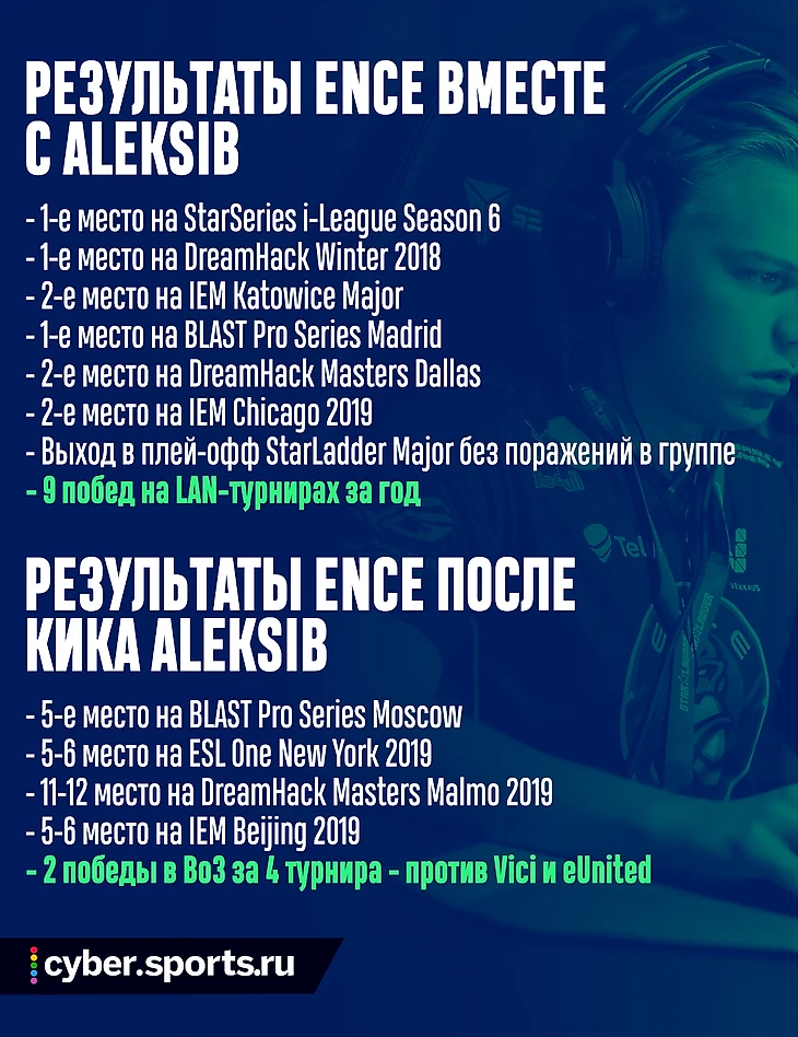 Можно пытаться оправдать изменение в составе внеигровыми проблемами, но факт остается фактом – полгода назад Ence боролась с Astralis за топ-1, а теперь не может выйти из группы даже на не самых крупных турнирах. Пока в сообществе спорят, можно ли считать этот трансфер худшим в истории CS:GO, мы сравнили результаты двух составов Ence – до кика Aleksib и после.