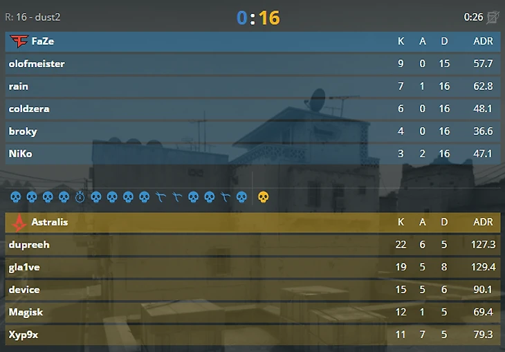 Еще неделю назад игроки Faze Clan поднимали трофей BLAST Pro Series Copenhagen, а сегодня проиграли Astralis на своем пике со счетом 0:16. Датский состав без шансов проехался по сопернику: за две карты команда Колдзиры и Нико смогла выиграть лишь два раунда.