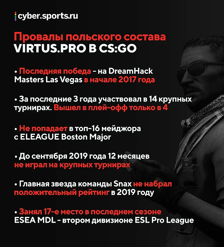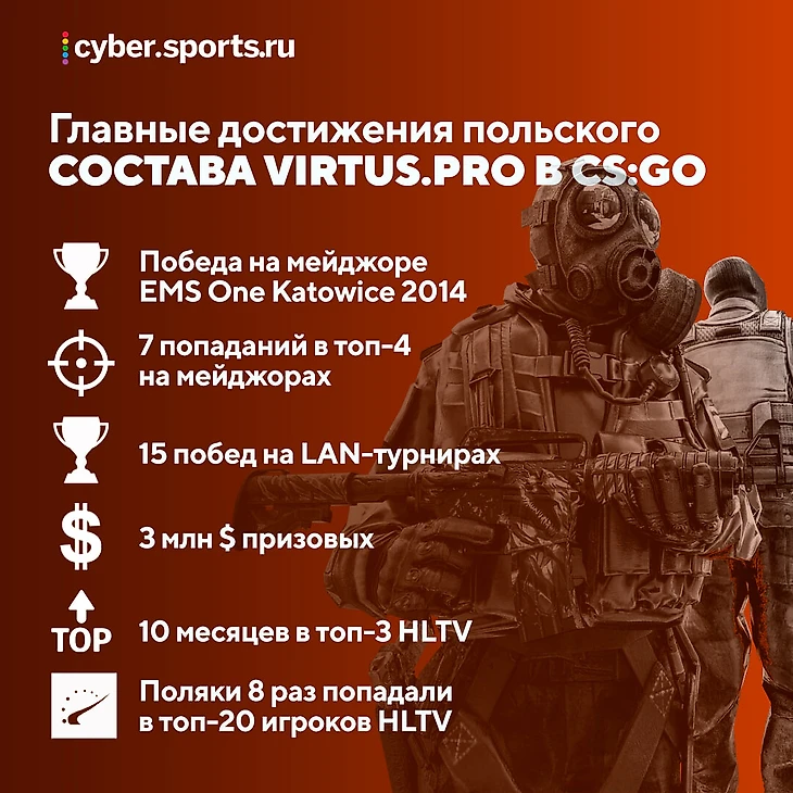 6 лет назад Virtus.pro представила польский состав по CS:GO. Это решение было неожиданным, но оно полностью оправдалось – уже на первом мейджоре команда заняла первое место. Следующие несколько лет Virtus.pro всегда была на вершине CS-сцены и боролась за победу на турнирах. Можно по пальцам пересчитать команды, которым удалось достичь такого же успеха.