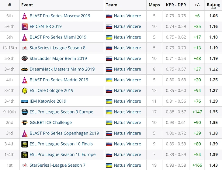 На общую статистику Симпла в 2019 году повлияли два турнира в Москве (BLAST Pro Series Moscow и EPICENTER 2019), худшие для него за сезон. На московском Бласте Саша почти ушел в негативный показатель K/D – последний раз такое было еще в 2017 году. Странно видеть такое выступление Симпла на СНГ-турнирах, где болельщики всегда максимально поддерживают NAVI.