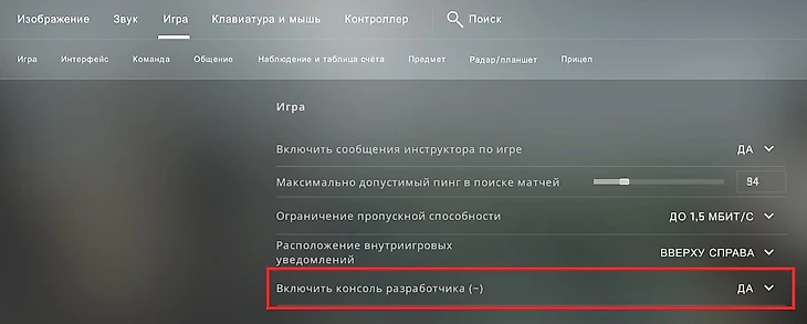 Для того, чтобы включить консоль, необходимо зайти в настройки и нажать на вкладку «Игра». В самой верхней части этого типа настроек будет находиться параметр «Включить консоль разработчика», в котором нужно поставить «Да». После этого вы сможете зайти в консоль, которая по умолчанию открывается при нажатии на букву «ё» на клавиатуре.