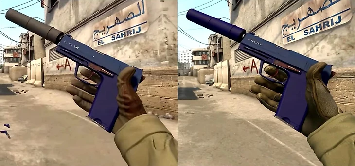 Подобная переделка коснулась и пистолета USP-S. В первой версии скина «Королевский синий» глушитель был не закрашен, что сильно выбивалось из общей картины. Вскоре с обновлением разработчики сделали скин полностью синим, из-за чего точно стал более королевским.