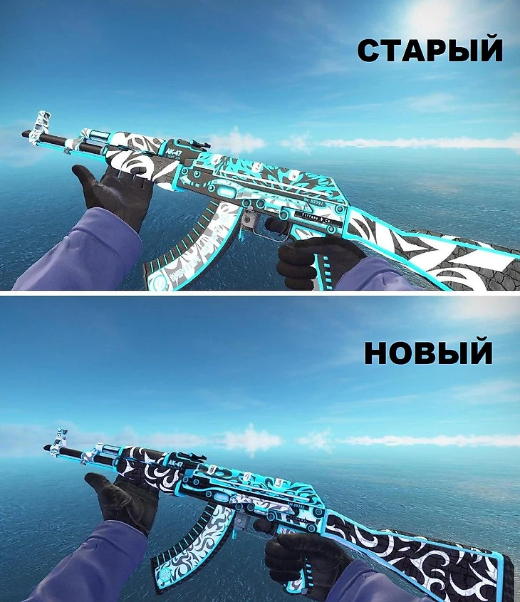 Не так давно Valve начала обновлять скины, рисунок на которых изначально должен был быть трехмерным. Самые большие визуальные изменения получил «Василиск», на котором с недавнего времени можно отчетливо рассмотреть рисунок зверя. На старую версию скина (снизу) теперь без слез не взглянешь.