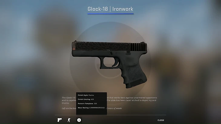 В CS:GO у скинов есть особый показатель Float Value (в официальном переводе – степень износа), который указывает на поношенность оружия. Чем этот параметр больше, тем хуже выглядит пушка, а скин будет более потертым.